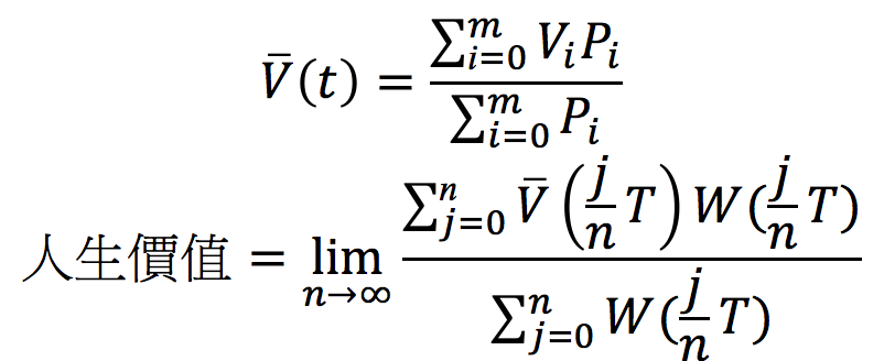感覺還有很多可以補充的,但這幾個基本論點應該已經算完備,一開始是想要把人生價值用積分的形態來表現,但後來發現只有概念類似,計算過程是不太一樣的。